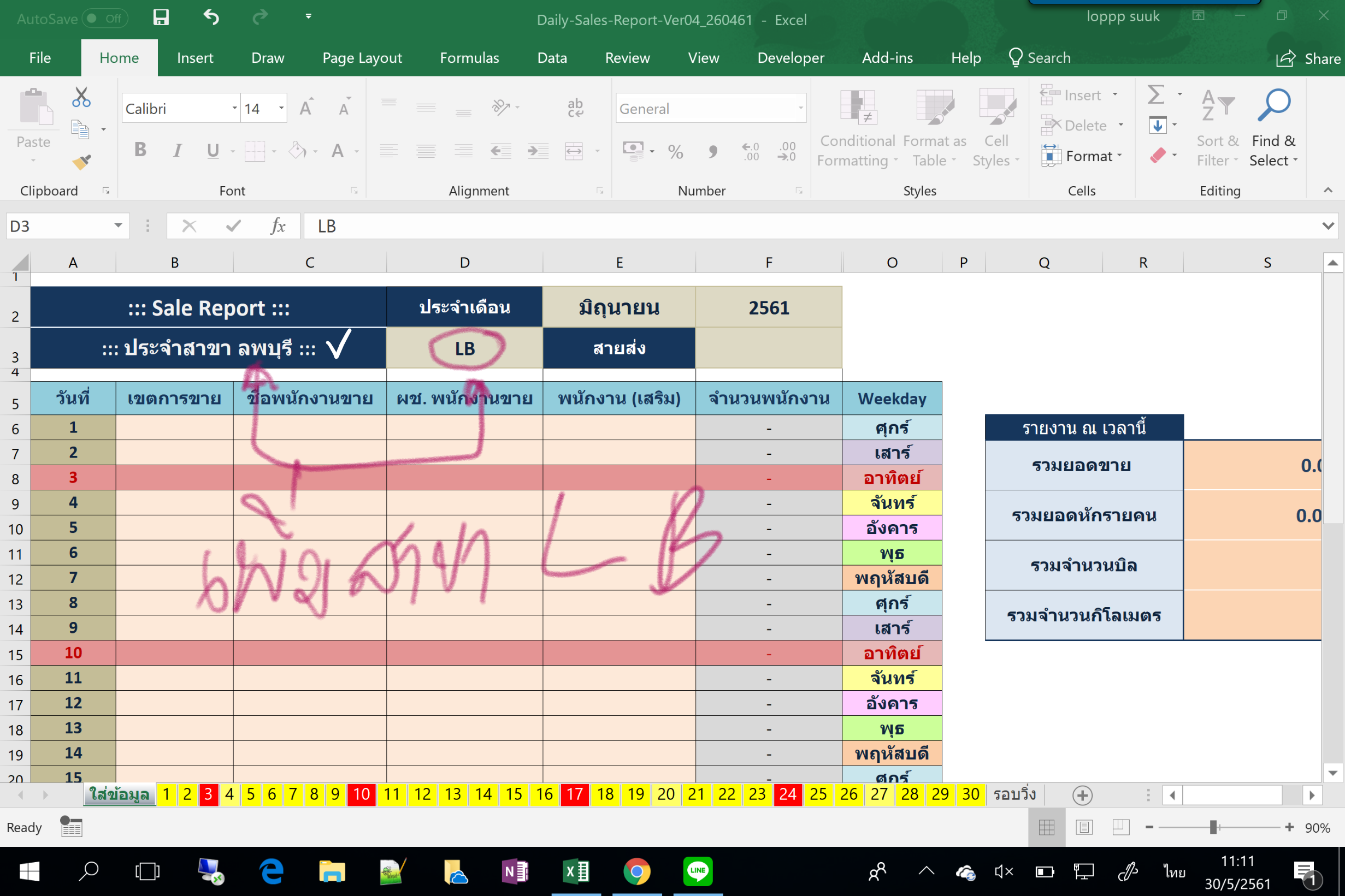 สถิติภาพรวมยอดขาย ทุกสาขา GB